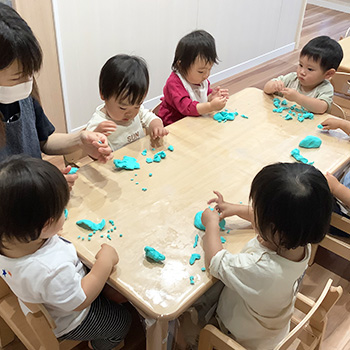 生後4か月から2歳児(3歳に達する年度末まで)までのお子さんを比較的小規模な環境(当園は定員12名)で、手厚く人員を配置し、きめ細やかに保育を行います。小規模保育園A型は保育従事者全員が有資格者となっています。